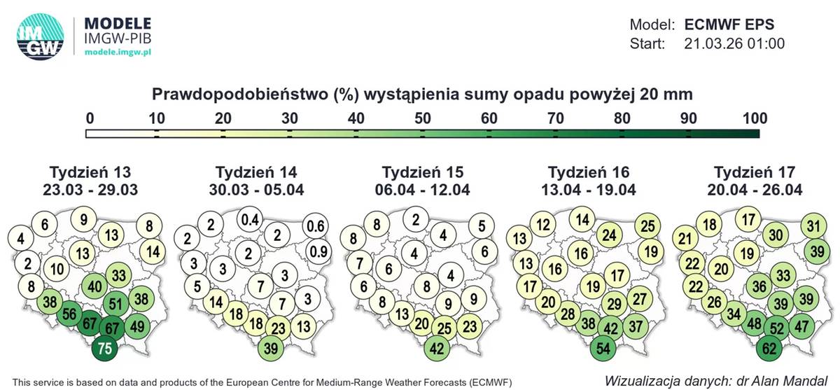 Bardziej precyzyjne dane, oparte na modelu ECMWF (Europejskiego Centrum Średnioterminowych Prognoz Pogody), dotyczą ostatniego pełnego tygodnia kwietnia (20-26 kwietnia). To kluczowy termin dla osób planujących dłuższy urlop - wzięcie 4 dni wolnego (27-30 kwietnia) w połączeniu z weekendami pozwala na dziewięciodniowy odpoczynek.
