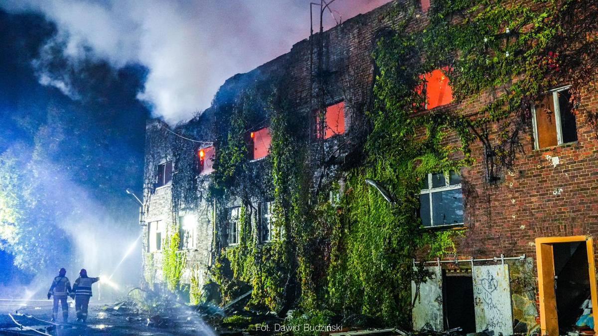 Wielki pożar w starej fabryce. Runął dach, w środku byli ludzie