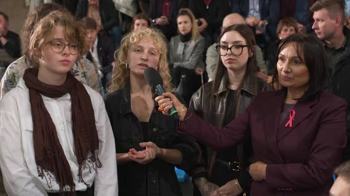Po kilku minutach mieszkańcy Piotrkowa Trybunalskiego mogli zadać pytania szefowi rządu. Jako pierwsze do głosu zostały dopuszczone protestujące kobiety z transparentami. Jak się okazało, został im tylko jeden, ponieważ - jak twierdziły uczestniczki - wcześniej zgromadzeni mieli zachowywać się wobec nich agresywnie.