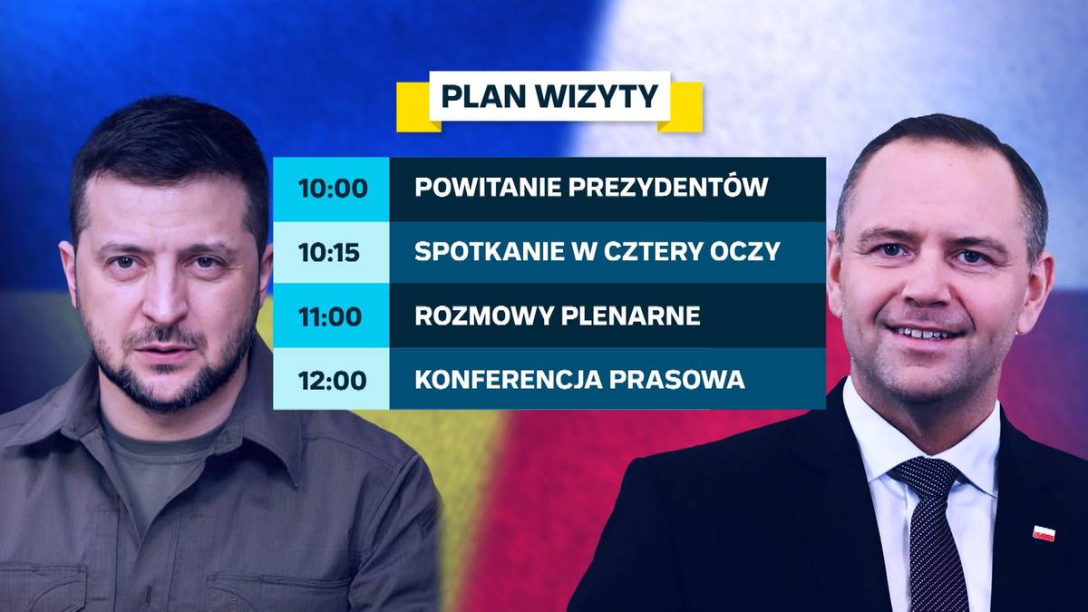Plan wizyty prezydenta Ukrainy w Polsce zakłada o godz. 10:15 spotkanie w cztery oczy z prezydentem Polski. Od godz. 11.00 będą trwały rozmowy plenarne delegacji pod przewodnictwem obu prezydentów. Według KPRP tuż przed godz. 12 zaplanowano spotkanie prezydentów Nawrockiego i Zełenskiego z przedstawicielami mediów.